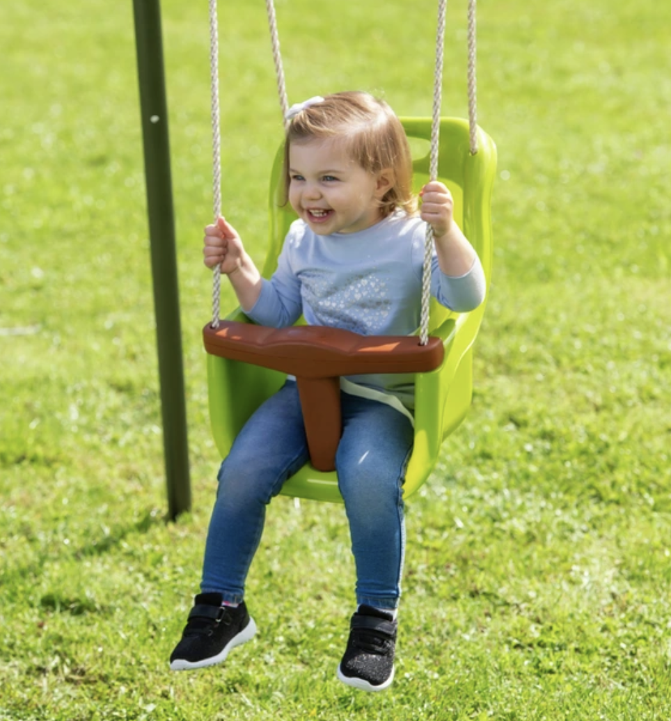 A safe, supportive and brightly coloured baby swing for tiny playground visitors.